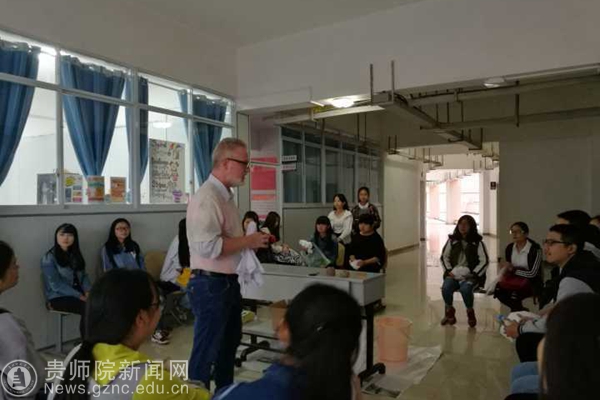 本网讯 10月13日,为了丰富学生第二课堂活动,提高学生英语口语能力,外国语学院繁星外语社学生与pp电子两位外籍教师Logan和Cooper在明义楼六楼外教办公室举行了一场妙趣横生的“扎染”活动。此次趣味活动除社团同学参加外还吸引了全校2015、2016级、2017级的众多学生参加。