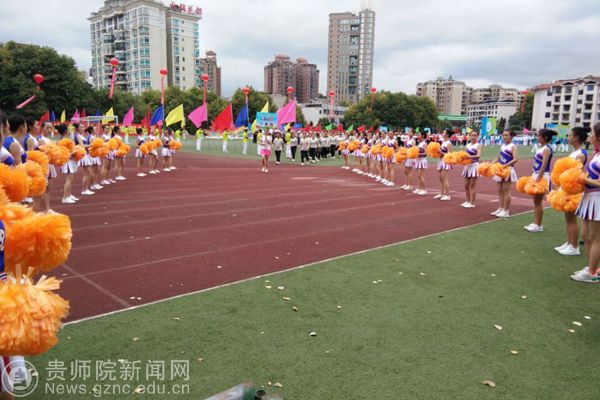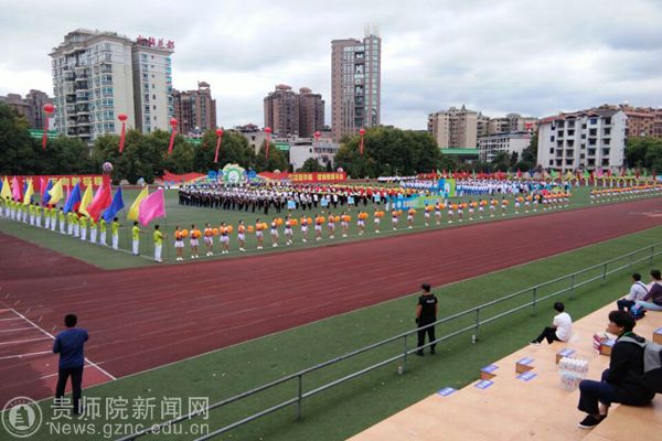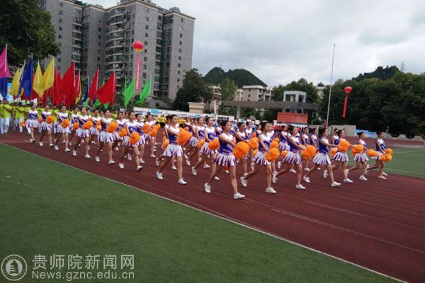 本网讯 9月28日上午,贵阳市乌当区第一届大健康运动会开幕,开幕式上,3000余人的入场队伍和展演队伍进行了精彩的文体展示,展现出全民健身的良好氛围。pp电子游戏官网派出花球、彩旗、引导员、志愿者、跆拳道、花样跳绳等入场和表演队伍共450人助力本次开幕式,副校长令狐荣锋和体育学院黄伟明院长参加了此次运动会开幕式。