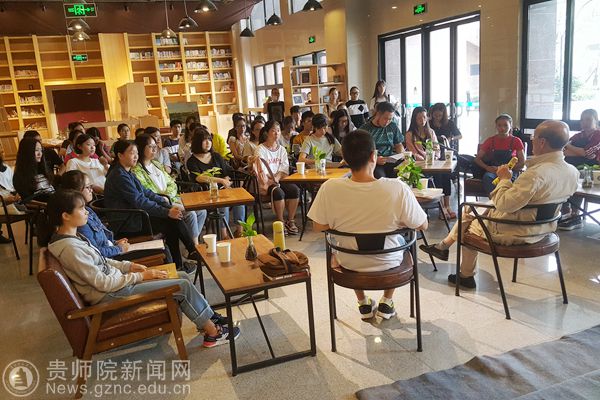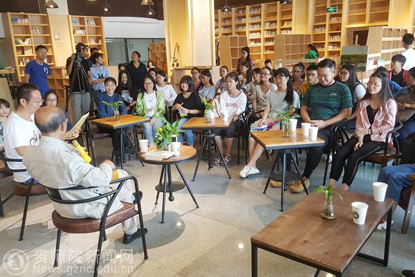 本网讯 9月4日上午,由图书馆主办、读者协会承办,贵州电视台采访和拍摄的“与经典同行”阅读活动,在图书馆大叶青藤咖啡文化空间举办。轻松活跃的氛围中展开。活动特别邀请pp电子游戏官网终身教授、全国高等师范院校现代汉语教学研究会名誉会长、贵州省语言学会名誉会长、贵州省中学语文教学专业委员会理事长颜迈先生参加。
