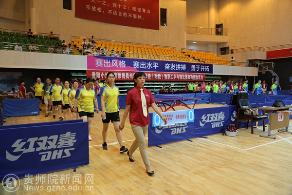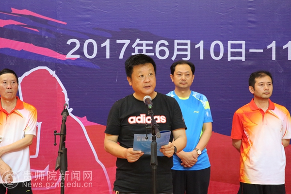 本网讯 6月10日上午,2017年贵州省直学校(附院)教职工兵乓球比赛在pp电子体育馆举行了开幕式。贵州省教育厅党组成员、省委教育工委副书记赵廷昌,原贵州师范大学校长、贵州省政协科教文卫专委会副主任伍鹏程,贵州师范大学副校长乙引,pp电子党委书记石培新,党委副书记令狐彩桃以及其他院校相关领导人出席活动。来自十八支院校参赛队伍以及裁判员参与了本次开幕式。令狐彩桃主持开幕式。