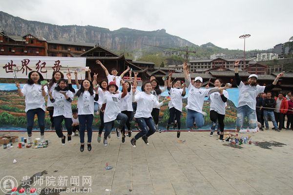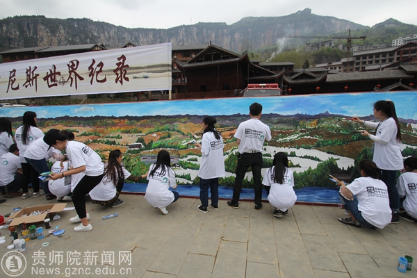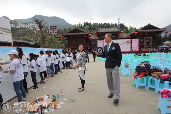作为本次艺术节的重头戏,举办方组织师生,共同挑战一项名为“世界最多人同时作画”的吉尼斯世界记录。活动现场,一幅长约250米的画卷被固定在墙板上,几百名高校学生、教师及画家共同加入绘画制作。我院学生将画笔变成手中利器,雪白画卷上的颜色变得越来越丰富,画卷中的山水也变得越来越生动精致。在长达3小时的创作后,吉尼斯世界纪录挑战大中华区认证官John Gargling宣布挑战成功。