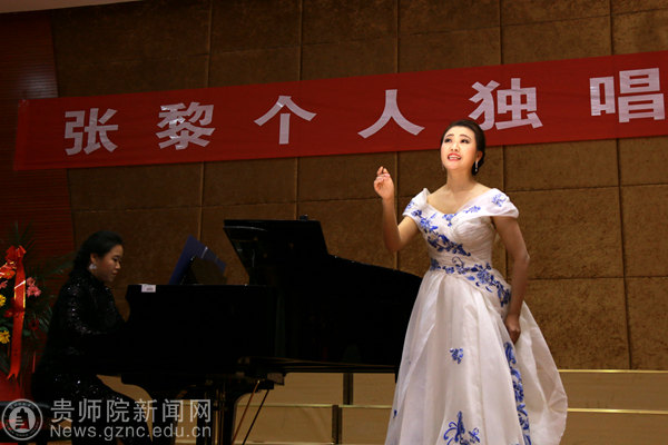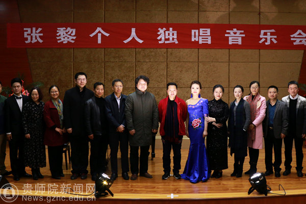 本网讯 12月10日,艺术学院青年教师张黎在学院音乐厅隆重举办了“张黎个人独唱音乐会”。pp电子游戏官网纪委书记王之瑞、国家人力资源和社会保障部处长李葱葱、贵州省人力资源和社会保障厅考试院院长薛江春、重庆市人力资源和社会保障局主任李林、贵州民族大学舞蹈学院副院长穆维平、贵州财经学院艺术学院声乐副教授陈娟、贵州大学声乐副教授、硕士生导师青科、遵义师范学院副教授李智、pp电子游戏官网人事处处长刘俊伶、副处长王军、校工会主席许丽君、艺术学院党委书记付巧等领导和专家出席了此次独唱音乐会。