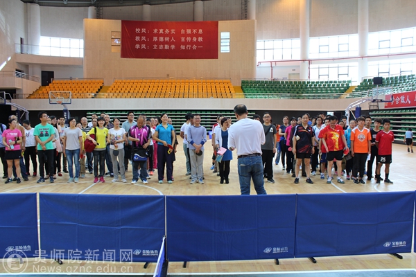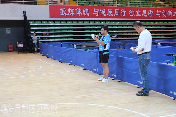 本网讯 10月26日下午,由校工会主办、体育学院承办的“安康杯”教职工乒乓球赛在学校体育馆拉开帷幕。本次比赛为混合团体赛,来自各基层工会的15支代表队、60余名男女运动员参加比赛,赛程3天分两个阶段,第一阶段为分组循环赛,第二阶段为交叉淘汰赛。