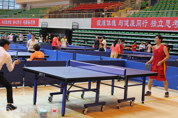 随着校长李存雄、副校长令狐荣锋开球,本次比赛正式开始。首日的赛场上,各代表队参赛运动员朝气蓬勃,斗志昂扬,各种打法竞相展现,直拍、横拍,扣球、旋转球、弧线球等各显神通,比赛中不时传出热烈的鼓掌声,兴奋的“好球”声不断,整个体育馆一片热闹景象。