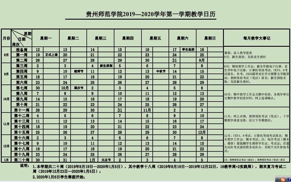 pp电子游戏官网2019—2020学年教学日历