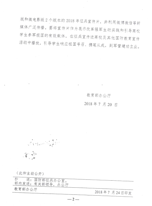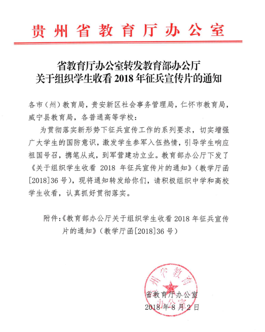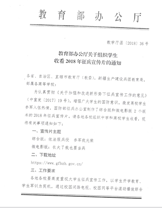 省教育厅办公室转发教育部办公厅关于组织学生收看2018年征兵宣传片的通知