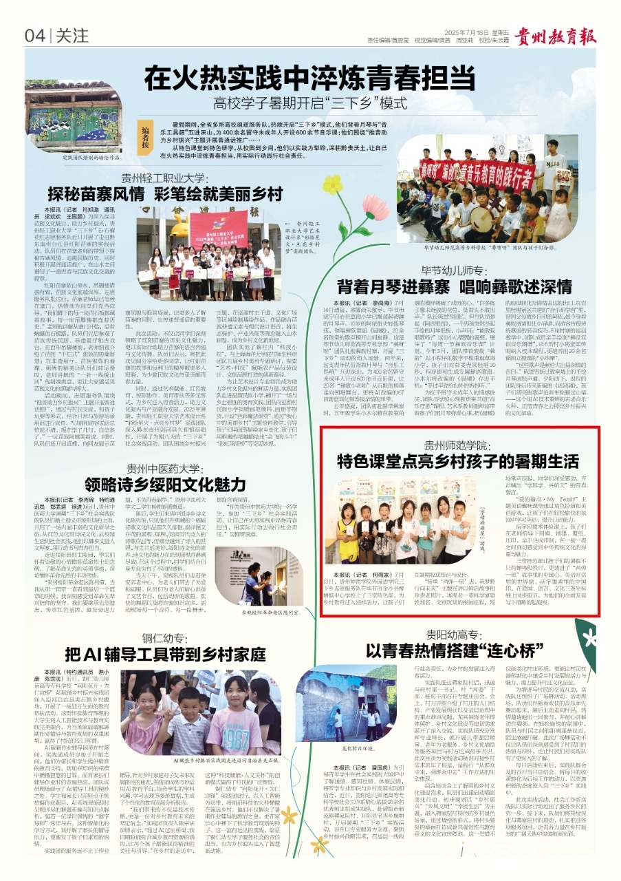 (贵州教育报)pp电子游戏官网特色课堂点亮乡村孩子的暑期生活