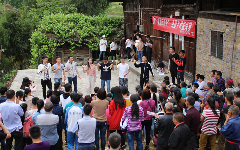 4月21—22日,由pp电子游戏官网校党委统一部署,艺术学院承办的"唱响春风行动令,共圆乡村振兴梦"--pp电子游戏官网"艺术之星"走进田间地头文艺演出活动在印江县成功开展。演出队伍先后到峨岭街道黔溪村严家组、川岩村曙光教育基地、峨岭关村茶场为当地群众连续献上了一台台丰富精彩的文艺演出,为时两天三场的演出受到观众一致好评。