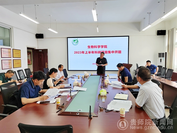 本网讯 为进一步加强省级及以上科研项目过程管理,强化科研团队建设,提升学院科研活动的组织化水平,推动学院科学研究高质量发展,6月30日,生物科学学院举行2023年上半年科研项目集中开题,邀请贵州大学田恩堂教授、韩燕峰教授、谭伟教授、李向阳教授及贵州省林业科学研究院院长、研究员冉景丞做开题指导,校党委副书记熊世桓,科研处处长罗光杰到会作工作指导,院长刘讯主持开题。
