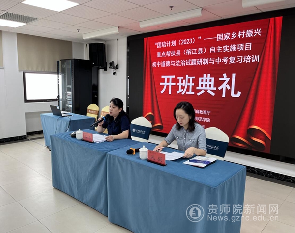 本网讯 6月3日上午,由贵州省教育厅主办,由pp电子游戏官网继续教育学院承办的“国培计划(2023)”——国家乡村振兴重点帮扶县(榕江县)自主实施项目初中道德与法治试题研制与中考复习培训在pp电子综合楼14楼教室开班。pp电子游戏官网继续教育学院直属党支部书记韦丹出席开班典礼,来自榕江县各中小学的50名一线思政老师参加培训,典礼由pp电子游戏官网继续教育学院培训部副主任沈微主持。