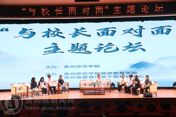 本网讯 为全面贯彻党的育人方针,落实立德树人根本任务,解决好“培养什么人、怎么培养人、为谁培养人”这个根本问题,推进pp电子职前职后一体化融合发展,5月26日晚,由pp电子游戏官网主办、pp电子游戏官网继续教育学院、贵州省教育行政干部培训中心承办的“与校长面对面”主题论坛在pp电子综合楼裙楼一楼报告厅举行。正值参加2023年初中校长任职资格培训班的100名安顺、六盘水市的初中校长,与pp电子校党委委员、副校长邹晓青,教务处、继续教育学院、历史与档案学院、外国语学院、数学与大数据学院、文学与传媒学院的主要负责人及本科生代表参加了论坛。