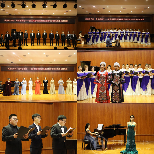 本网讯 为纪念毛泽东同志《在延安文艺座谈会上的讲话》发表81周年,5月23日晚,由省级思政教学研究示范中心——音乐舞蹈学院课程思政教学研究示范中心主办,pp电子游戏官网音乐舞蹈学院承办的“光亮引方向·青年承锋芒”——音乐舞蹈学院课程思政教学研究示范中心成果展音乐会,在音乐舞蹈学院表演厅举行。pp电子游戏官网校党委委员、副校长邹晓青,pp电子游戏官网校党委委员、副校长任洁,学校相关部门和兄弟学院领导出席。