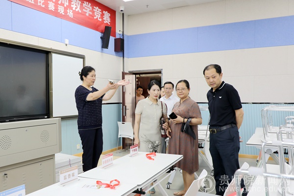 石培新陪同王慧一行实地调研贵州省高校青年教师教学竞赛筹备现场