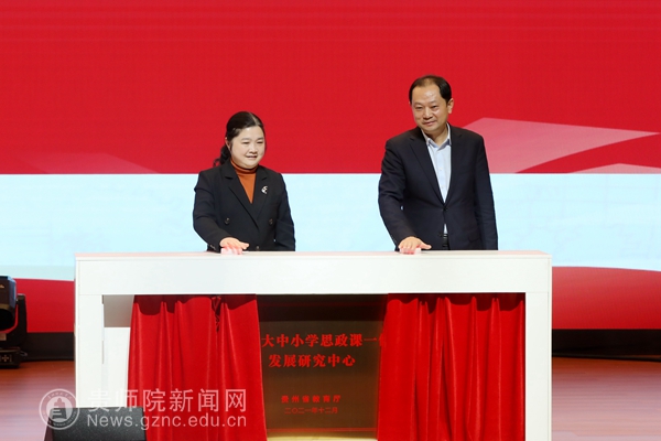 仪式上,杨未宣读了《省教育厅关于新增贵州省高等学校人文社会科学研究基地的通知》。在热烈的掌声中,杨未和石培新共同为“贵州省大中小学思政课一体化发展研究中心”揭牌。