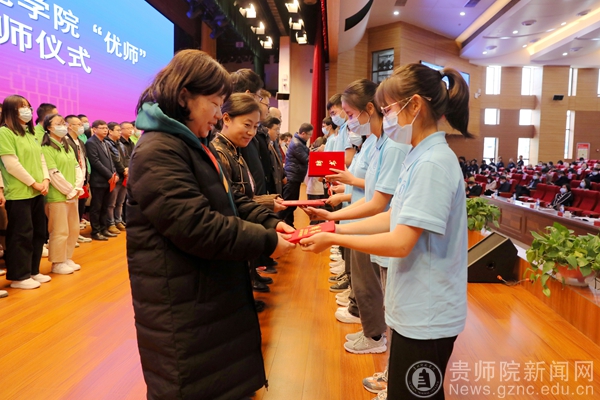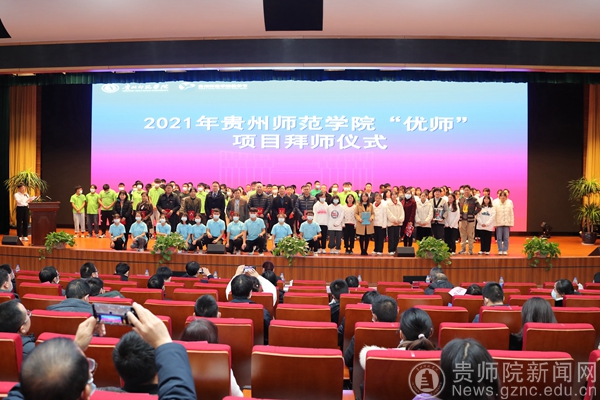 本网讯 为牢固树立首批“优师计划”学生成为未来乡村教育者的理想信念,引领其涵养长期从教、终身从教的职业情怀和职业素养。在第二届pp电子游戏官网教学节开幕式上98名优师学生和49名校内导师首次集体亮相,举行了温暖的拜师仪式,学生郑重向自己的校内导师行中华传统鞠躬礼、颁发精心自制的聘书,导师为爱徒亲手佩戴上pp电子游戏官网校徽。从这一场朴实而又庄重的拜师礼起,就确定了师徒名分,既有教师对学生的深深教诲之责,也饱含了学生向教师学习的拳拳之心,更是弘扬了中华民族的优秀文化和尊师重道的传统美德。