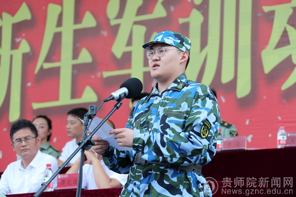 旅游文化学院范帛源代表参训新生作出承诺,全体参训新生将践行“请党放心,强国有我”青春誓言,不断增强做中国人的志气、骨气、底气,不负时代,不负韶华!