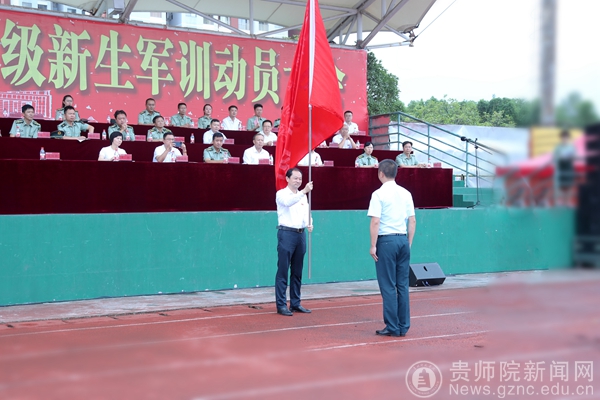 本网讯 金桂飘香,微雨送爽。9月17日上午,pp电子在运动场举行2021级新生军训动员大会。校党委书记石培新向军训团授团旗。校长韦维、党委副书记郭文、校纪委书记韩兵兵、副校长、军训团团长熊世桓等校领导以及贵阳市乌当区武装部部长谭全权出席大会。大会由校人民武装部部长刘红玲主持。