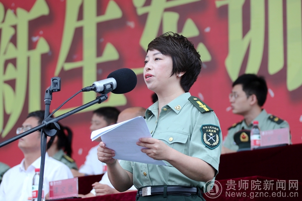 军训教官蒋加富代表全体教官表示,全体教员将发扬部队的优良传统,认真准备、严格要求、严格训练,努力提高同学们的军事理论水平和技能。