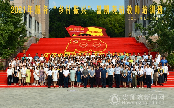 开班仪式结束后,与会领导与全体学员合影留念。据悉,本期培训班从7月19日到8月1日共14天,来自黔东南州、黔西南州、黔南州和毕节市的160位乡村初中英语教师参加此次培训。