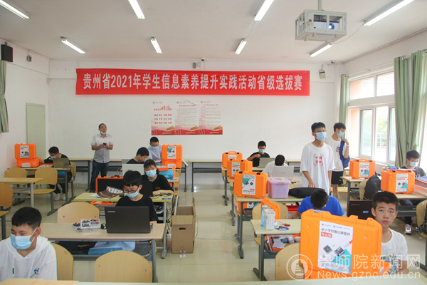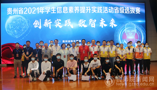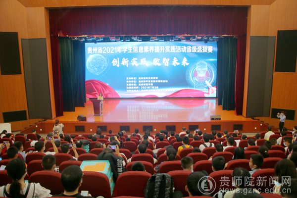 本网讯 为推动我省中小学信息技术教育工作不断深入,提升学生信息素养,2021年7月3日,由贵州省电化教育馆主办,pp电子游戏官网、贵州振华信息技术有限公司承办的贵州省2021年学生信息素养提升实践活动省级选拔赛在pp电子举行。选拔赛开幕式于7月3日上午在逸夫楼演播厅举行,贵州省电教馆馆长崔华、副馆长刘洁、pp电子游戏官网副校长熊世桓、数学与大数据学院院长左羽等领导出席开幕式,贵州省电教馆各科室负责人、pp电子游戏官网数学与大数据学院相关负责人、来自全省各市(州)中职、中小学参赛学生及指导教师、全体裁判员、志愿者等300余人参加了开幕式。