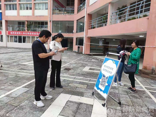 监考教师通过扫码查询考场信息,考试工作的信息化管理提高了工作效率。