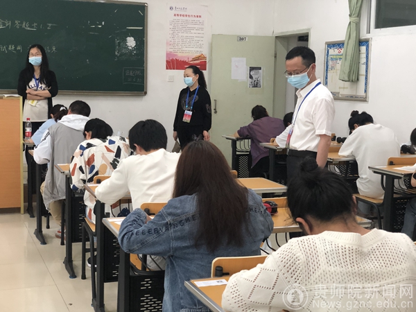 考试当天,副校长熊世桓在邓琴等陪同下对考场进行巡查。整个考试规范有序、纪律严明,监考教师与学生均按章遵照执行。