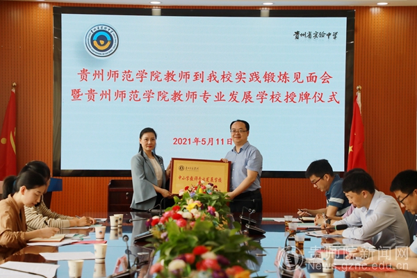 本网讯 5月11日上午,学校党委委员、副校长邹晓青代表学校在附属中学贵州省实验中学召开2021年上半年跟岗实践学习见面会,并举行“pp电子游戏官网中小学教师专业发展学校”授牌仪式。会议由实验中学党委书记蔡宗平主持。