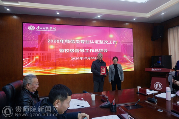会议包括两项主要内容,首先,由质评办邓琴主任汇报了学校师范类专业认证工作推进情况,《pp电子游戏官网(汉语言文学)专业认证整改工作方案》及2021年认证工作安排;数学与应用数学专业、汉语言文学专业负责人分别汇报了专业认证整改工作开展情况; 2021年拟接受认证的英语、历史学、化学、美术学、音乐学、体育教育等6个专业的负责人分别汇报了认证工作推进过程中存在问题及需校、院两级整改解决的相关内容;其次,由邓琴汇报2020年校级督导工作、通报督导换届情况及2021年的督导工作要点;第三,由校级教学督导张莹、吴在东、黄天明分别就2020年各学院毕业论文(设计)、实习以及试卷工作的自评情况进行通报;其间,为感谢吴在东老师从事学校教学督导工作十年间为学校教学工作作出的积极贡献,韦维为校级督导吴在东老师颁发荣誉证书。