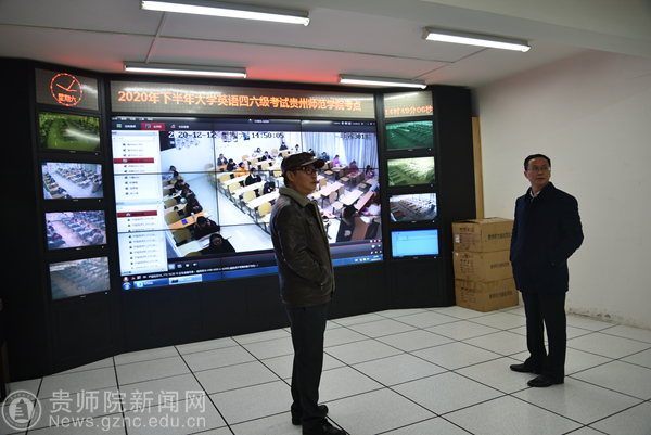 熊世桓、刘宪帮在监控室查看考场