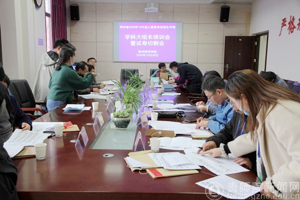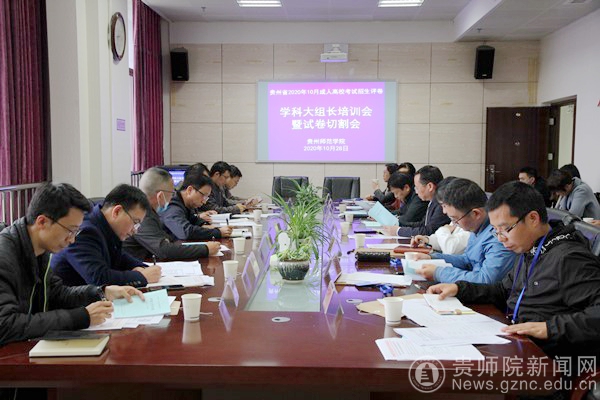 本网讯 10月28日下午,贵州省2020年10月成人高校考试招生评卷学科大组长培训会暨试卷切割会在pp电子游戏官网国家教育考试评卷基地会议室召开。贵州省招生考试院成招处处长黄克勇、pp电子副校长熊世桓出席会议,继续教育学院副院长何荣、各阅卷学科大组长、深圳市海云天科技股份有限公司项目负责人参加会议。会议由pp电子游戏官网继续教育学院院长赵德肃主持。