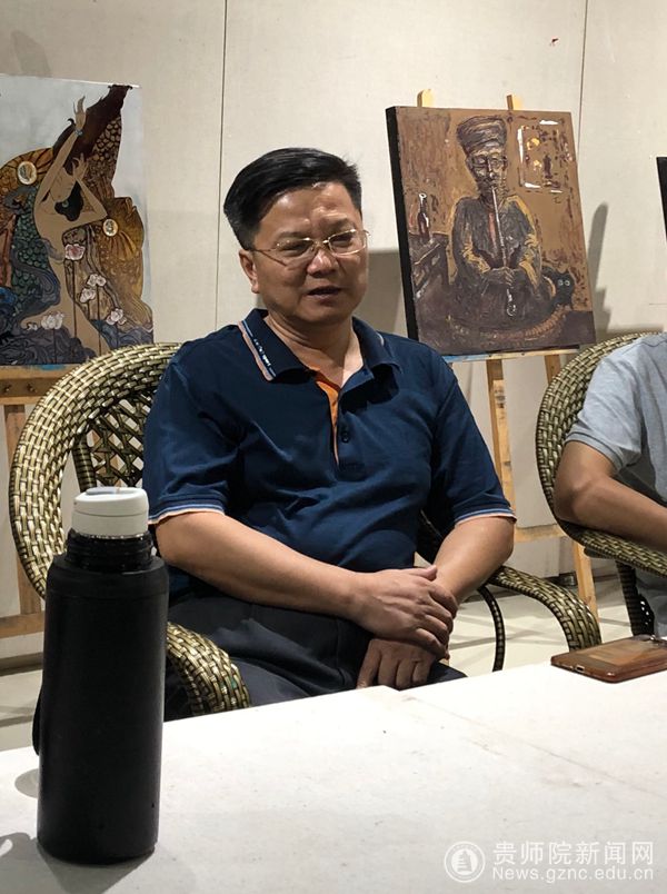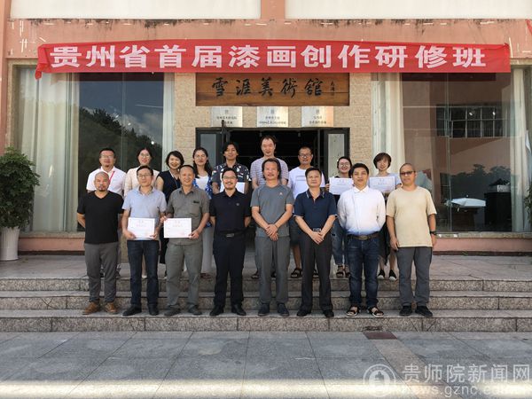 本网讯 2020年8月26日上午,在pp电子游戏官网美术与设计学院在雪涯美术馆心举行了“贵州省首届漆画创作研修班”结业典礼。此次培训活动邀请了著名漆画家江书荣先生作为创作培训导师对我院十余名教师进行了为期35天的培训。从现场摆放完成作品有近二十余幅,作品制作精美,富有漆画艺术语言特征,同时还具备较高的艺术水准。此次培训得到了学校领导的大力支持和鼓励,美术与设计学院也从人员组织、经费支持、后勤保障、带头创作等方面也给予了大力帮助。pp电子游戏官网学术与设计学院领导班子及参与创作培训的教师参加了此次结业典礼。结业典礼由造型研究中心执行主任伍鹏举主持。