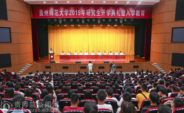 贵州师范大学校长肖远平代表学校对2019级研究生新同学的到来表示诚挚的欢迎和由衷的祝贺,并介绍师范大学优秀师生的先进事迹勉励同学们。一要胸怀报国志,把精力用在刀刃上。他希望同学们不为名利所绊,不为喧嚣所动,在自己的研究领域兢兢业业、踏踏实实做学问,下点慢功夫,先谋“坐得住”,再取“立得住”,方能“行得远”。二要守得住底线。他希望同学们从开启科研生涯的第一天起就坚守学术操守,把品德内化在心里,自尊自律,端正学风,保持定力、严守规矩,对科研工作存敬畏之心,把学问和人格融合在一起。三要服务国家需求,把论文写在大地上。希望同学们紧紧围绕国家和区域发展大局选课题、做文章、搞科研,走出校门、接触社会,服务脱贫攻坚,做出“上接天线下接地气”的成果,成为对国家和人民有用的社会主义建设者和接班人。最后,他希望同学们珍惜这短暂而又宝贵的研究生时光,不负期待,在人生最美好的岁月,在所选择的贵州师范大学继承和发扬贵师人“爱国 奉献 敬业 自强”的精神品格,心无旁骛做学问,笃实力行有担当,干出一番大事业,更好为国家争光,为人民造福。