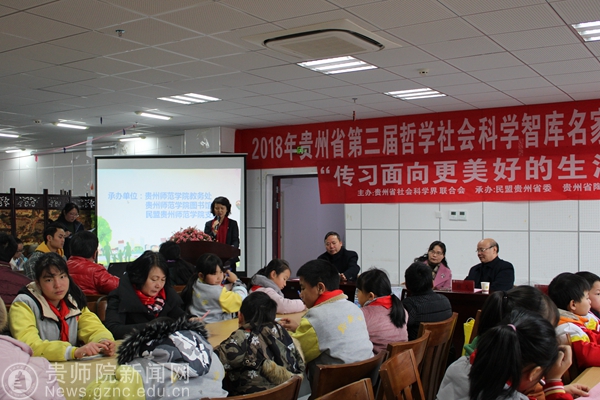 郭文为会议做开幕欢迎词并介绍了会议的背景。党的十九大后,全省广泛设立“习近平新时代中国特色社会主义思想传习社”,旨在深入推动党的十九大精神进企业、进农村、进机关、进校园、进社区,让党的十九大精神在贵州更好落地生根、开花结果。今年6月,贵州省社科联、贵州省陶行知教育思想研究会、pp电子游戏官网携手共建“传习社”,并在毕节市金海湖新区启动试点,旨在充分发挥民主党派、高校、社会组织人才荟萃的智力优势,广泛连结群众与各级党委政府行政部门的特色,建设好、开展好 “传习社”工作。经过一段时间的努力及探索,形成了一定的经验。会议汇聚文化、教育界的专家、汇聚基础教育、高等教育工作团队,汇聚力量,整合资源,建立协同合作模式,助力贵州文化教育事业的发展。
