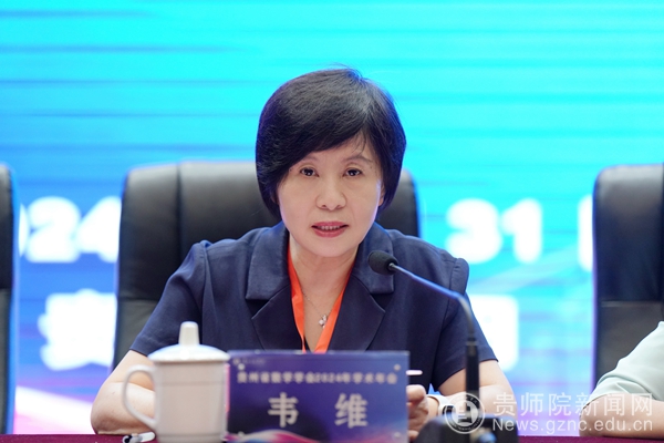 韦维校长在开幕式上致辞,她首先代表学校对贵州省数学学会决定由学校承办此次学术盛会表示感谢,对前来参会的专家学者和各位代表表示热烈欢迎,向参会嘉宾和代表简要介绍了pp电子游戏官网的基本情况。韦维校长在致辞中指出:国家高度重视和大力支持数学研究与应用,数学在建设科技强国中有着非常重要的地位。为推动数学学科发展,需要数学教育工作者、研究人员携手努力。希望贵州省数学教育工作者能够借本次会议契机,升华交流,碰撞思想,刻苦耕耘,携手为推动贵州省数学教育、科学研究与发展而共同努力。韦维校长预祝贵州省数学学会2024年学术年会圆满成功。