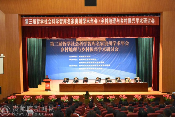 本网讯 11月8日,第三届哲学社会科学智库名家贵州学术年会·乡村地理与乡村振兴学术研讨会在pp电子逸夫楼演播厅隆重举行。本次大会由贵州省社科联主办,pp电子游戏官网科研处、pp电子游戏官网地理与资源学院承办,贵州省流域地理国情监测重点实验室、pp电子游戏官网旅游文化学院协办,来至中国科学院、云南大学、贵州师范大学等省内外专家以及300余名师生参加了会议。