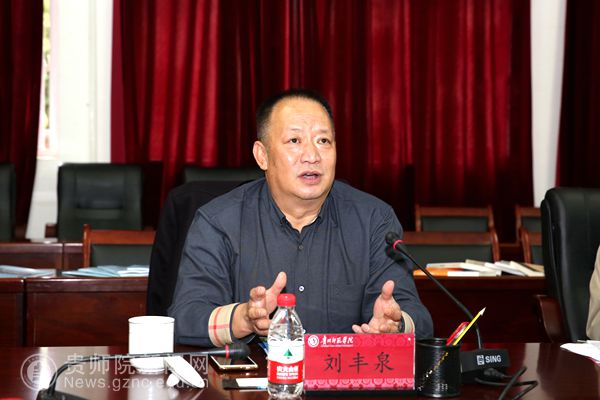 本网讯 10月26日上午,贵州省“人文社科示范基地”评估考察组对pp电子申创的贵州非物质文化遗产研究中心进行了实地考察与现场评估,并对贵州民族审美文化传播基地建设情况进行了督查。考察组成员有省社科联党组成员、秘书长、考察组组长刘丰泉,省社科联科普部副部长冯新贵、调研员黄莉、工作人员刘又溦。pp电子副校长余维祥、副校长郭文出席了评审会,各相关学院、部门负责人,贵州非物质文化遗产研究中心工作团队、贵州民族审美文化传播基地工作团队及部分学生代表参加了此次会议。会议分为申创评估、意见反馈及建设督查三个阶段,pp电子科研处处长王平瑞主持第一阶段会议,考察组组长刘丰泉主持第二、三阶段会议。