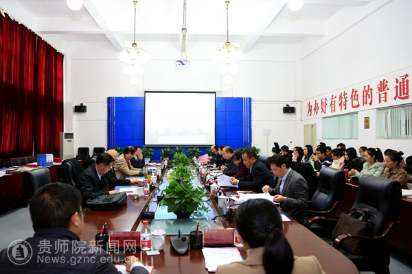 本网讯 11月24日上午,省社科联巡视员吴黔斌率专家龚振黔、张继泽、刘爱莅临pp电子开展2017年度贵州省哲学社会科学创新团队复评考察工作。复评考察工作分两个阶段进行,首先在第一会议室召开座谈交流会,校长郁钟铭、副校长郭文出席座谈会,相关学院、部门负责人,贵州省乡村旅游资源开发与旅游扶贫研究创新团队代表参加,副校长郭文主持座谈会。
