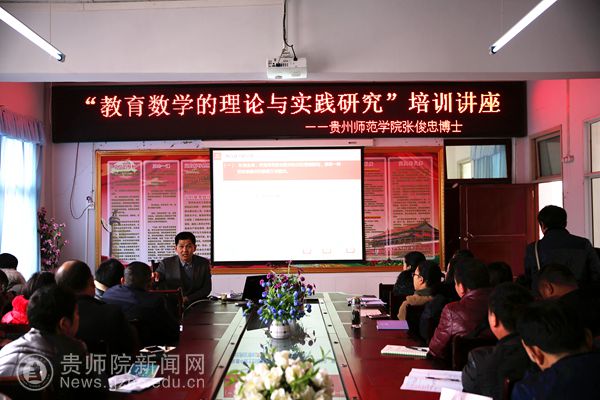 授牌仪式过后,还开展了相关的活动,首先是院士工作站专家团队成员、贵州省乡村名师张天信工作室顾问张俊忠博士为参会的老师们开展了“教育数学的理论与实践研究”培训讲座;其次院士工作站专家团队成员梅俊雷老师也为参会的老师们开展了“网络画板的应用”专题培训;再次来自凯里五中的实验教师欧春龙为全体参会人员上了一节教育数学示范课。最后是“教育数学的理论与实践研究”教学研讨活动,在活动中pp电子数学与计算机科学学院党委副书记李艳琴教授就“如何开展张景中院士的教育数学实验”作了全面的分析和指导,上海市特级教师、数学教育专家周继光、黔西县原政协副主席、数学特级教师蒋远辉也对活动进行指导。
