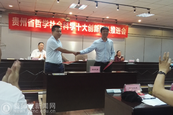 本网讯 7月12日下午,由贵州省社会科学界联合会举办的“贵州省哲学社会科学十大创新团队推进会”在黔云培训中心举行。各市州社科联负责人、各高校科研处处长和各学会、协会、研究会负责人以及省社科联全体机关干部共150余人参加会议。会议由省社科联党组书记、副主席包御琨同志主持。pp电子高研院中国山地民族研究创新团队成员杨定玉、黑洁锋应邀参加此次会议。