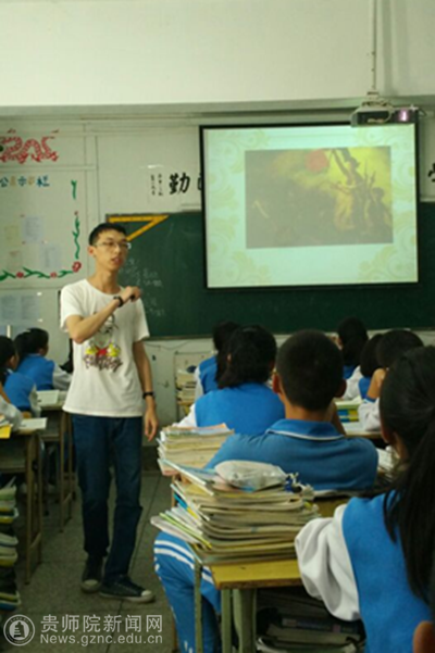 实习生李凯文同学在进行课堂教学