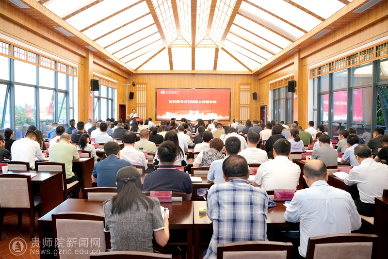 本网讯6月24日,校党委书记石培新为全校副处级以上党员干部讲授深入贯彻中央八项规定精神学习教育专题党课。校党委班子成员参加了专题党课学习。
