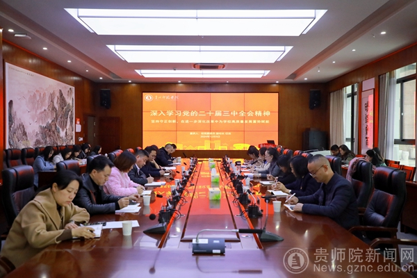 任洁指出,党的二十届三中全会是在以中国式现代化全面推进强国建设、民族复兴伟业的关键时期召开的一次具有里程碑意义的重要会议。学习贯彻好这次全会精神,是当前和今后一个时期全校上下的一项重大政治任务。广大党员干部要全面准确把握党的二十届三中全会精神实质内涵,以钉钉子的精神,不折不扣落实全会精神。按照进一步全面深化改革、推进中国式现代化的总体要求,结合学校实际,明确改革方向,坚定改革信心,凝聚改革合力,围绕全面加强党的建设、落实立德树人根本任务、提升学科专业水平、提升创新能力、建设高质量教师队伍、提升开放办学水平等方面抓改革突破,为培养担当民族复兴重任的时代新人、推进中国式现代化贡献教育力量。