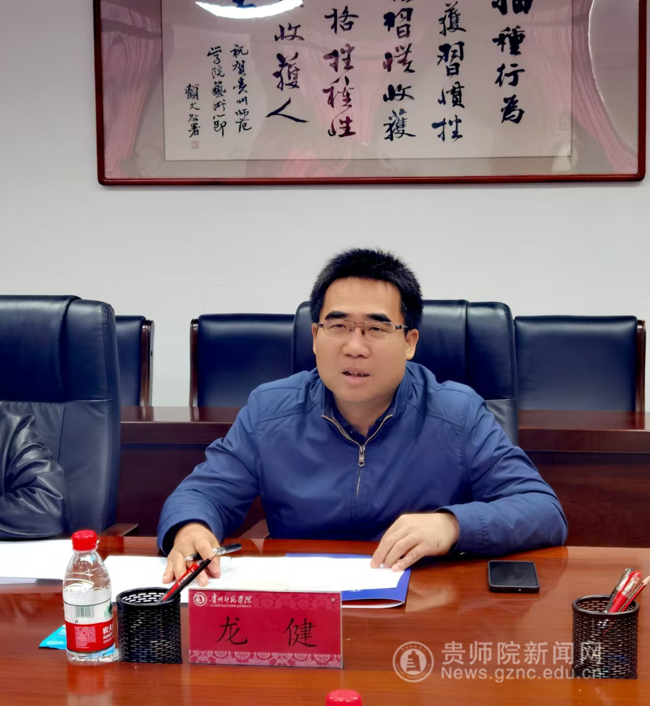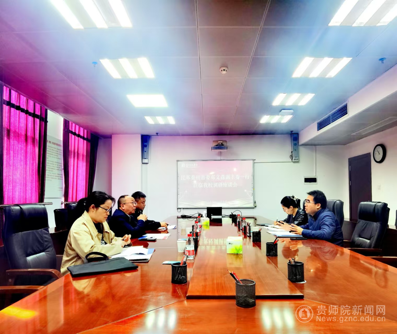 本网讯 11月8日上午,民革贵州省委邓文淼副主委一行莅临pp电子调研,在信息楼1011会议室召开座谈会,针对民革基层组织建设调研。校党委副书记龙健出席并讲话。