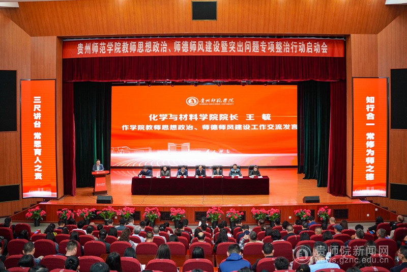 本网讯 为全面贯彻习近平总书记关于教育的重要论述和全国全省教育大会精神,落实中央和省关于加强高校教师队伍建设的决策部署,强化学校师德师风建设,巩固拓展师德师风建设成效,4月23日,学校在逸夫楼演播厅召开教师思想政治、师德师风建设暨突出问题专项整治行动启动会。全体校领导出席会议。会议由校长韦维主持。