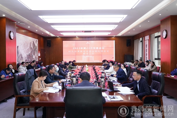本网讯 12月1日上午,校党委书记石培新主持召开党委会,听取省委巡视整改工作领导小组办公室情况汇报、意识形态工作责任制巡视整改工作小组情况汇报、选人用人巡视整改工作小组情况汇报、省委巡视反馈问题整改工作监督组情况汇报,研究部署推进巡视整改下一步工作。校党委班子成员熊世桓、韩兵兵、邹晓青、任洁、薛璞参加会议,校长韦维,各基层党委(直属党支部)、牵头整改责任单位主要负责同志列席会议。