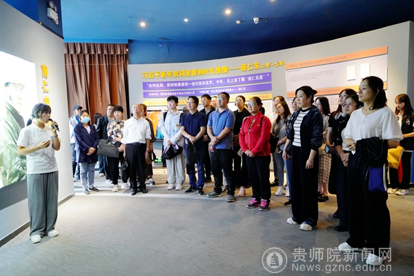 重学楷模事迹,激发担当作为。全体教师在讲解员的引领下,怀着崇敬的心情参观南仁东事迹馆,认真观看馆内历史图片、影像资料。通过一幅幅历史图片、一段段峥嵘岁月、一个个感人故事,回顾了南仁东老先生为党为国鞠躬尽瘁的一生,“北筑鸟巢迎圣火,南修窝凼落星辰”——南仁东教授把毕生心血倾注到FAST的建设中,令人动容、令人敬仰,更令人奋进!来到天文体验馆,聆听了天文知识讲解、观看了天文短片,教师们纷纷表示,正是通过像南仁东教授这样的科学家一代代慎终如始、接续努力,我们才能看到如此美丽浩瀚的宇宙,作为人民教师,更要像南老一样以身作则、勇于担当。