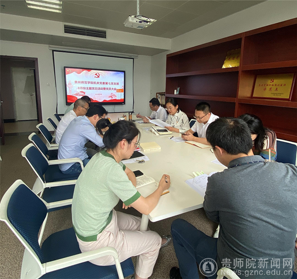 机关党委第七党支部全体党员在会前认真开展了党的二十大报告、《中国共产党章程》等原著自学。会上,党支部书记任翠娟领学《习近平新时代中国特色社会主义思想专题摘编》中“教育是国之大计、党之大计”节选部分;党支部组织委员叶春阳同志领学习近平总书记视察贵州重要讲话精神和对贵州工作重要指示批示精神;党支部纪检委员冯桂凤领学《论党的自我革命》中“坚定不移全面从严治党,深入推进新时代党的建设新的伟大工程”的节选部分和《习近平新时代中国特色社会主义思想专题摘编》中“以自我革命精神推进全面从严治党”的节选部分;党支部宣传委员赵磊领学《中国共产党章程》第一章和《关于新形势下党内政治生活的若干准则》等。
