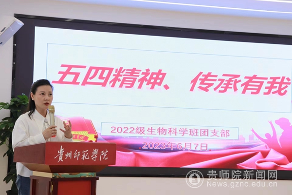 本网讯 6月7日,生物科学学院2022级生物科学班于大学生事务中心举行了“五四精神,传承有我”主题团日活动。校党委委员、副校长邹晓青,学院党委书记孙秀华、院长刘讯、辅导员李育芳参加活动。