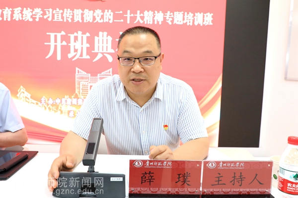 本网讯 为深入开展学习贯彻习近平新时代中国特色社会主义思想主题教育,推动习近平新时代中国特色社会主义思想和党的二十大精神进教材、进课堂、进师生头脑,进一步加强全省教育系统宣传干部队伍建设。5月30日上午,由中共贵州省委教育工委、贵州省教育厅主办、pp电子游戏官网承办的全省教育系统学习贯彻党的二十大精神专题培训班在pp电子举行。校党委副书记熊世桓出席开班典礼。开班典礼由校党委委员、宣传部部长、马克思主义学院党委书记薛璞主持。