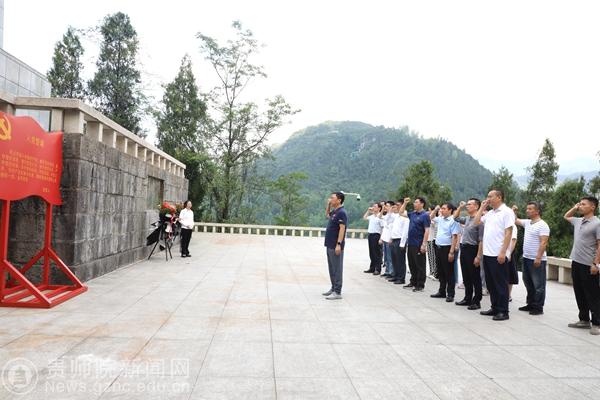 青山环抱、青松挺立,中国工农红军第二第六军团会师纪念碑庄严肃穆。全体纪检监察干部向会师纪念碑敬献了花篮,庄严瞻仰了纪念碑,深切缅怀革命先烈。在纪念碑前,校党委委员、纪委书记、省监委驻pp电子游戏官网监察专员韩兵兵同志带领全体干部重温入党誓词,铮铮誓言在山谷中久久回荡。